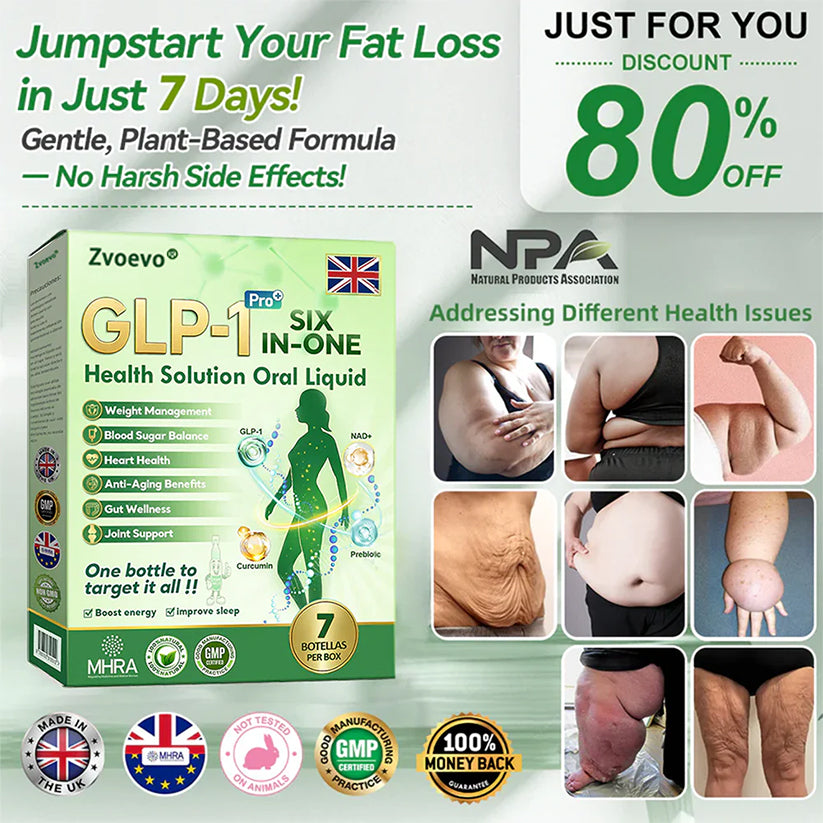 "I was once on the brink of death due to severe obesity. My health was deteriorating fast—I had high blood pressure, diabetes, and no energy to even get out of bed. After trying countless diets and treatments with no success, I found Zvoevo® GLP-1 Six in One Health Solution Oral Liquid. At first, I was skeptical, but I decided to give it a try. To my surprise, within just two months, I lost 80 pounds, my blood pressure normalized, and I felt more energetic than ever before. This product truly saved my life, giving me a second chance to live a healthy, happy life." - Linda Brown, Leeds, UK