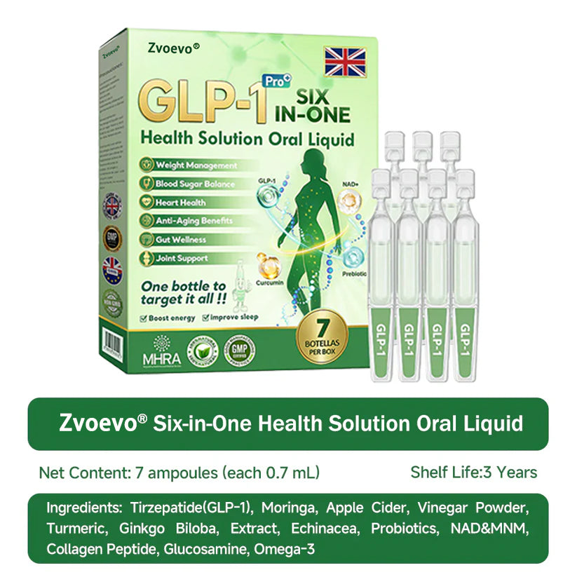 Zvoevo® GLP-1 Six in One Health Solution Oral Liquid was developed by a team of over 30 experts in international endocrinology and diabetology after more than 3 years of research. It combines Tirzepatide with powerful herbal ingredients to boost metabolism, accelerate fat burning, and support digestive and lymphatic health. This oral solution has been approved by the U.K. Medicines and Healthcare products Regulatory Agency (MHRA) for its safety and efficacy, offering a scientifically backed solution for weight loss and overall wellness.